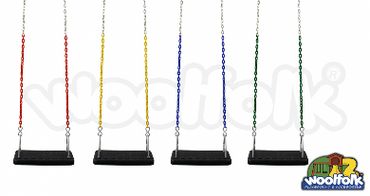 1. Columpio de uso residencial elaborado en polímero inyectado con respaldo y cadena frontal;